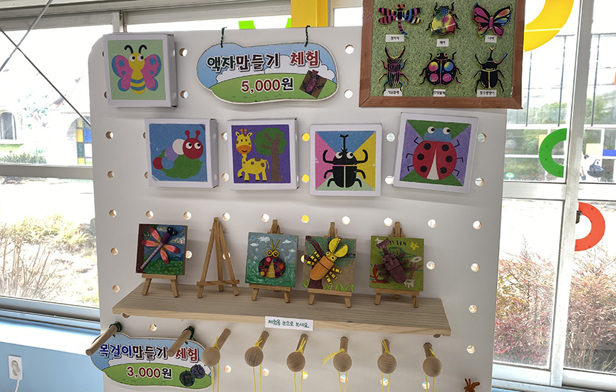 - 곤충 만지기, 낚시하기 체험, 곤충판매 등이 있습니다.