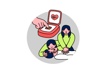 - AED는 2분마다 심장리듬을 반복해서 분석하며, 이러한 심장충격기의 사용 및 심폐소생술의 시행은 119구급대가 현장에 도착할 때까지 지속되어야 한다.