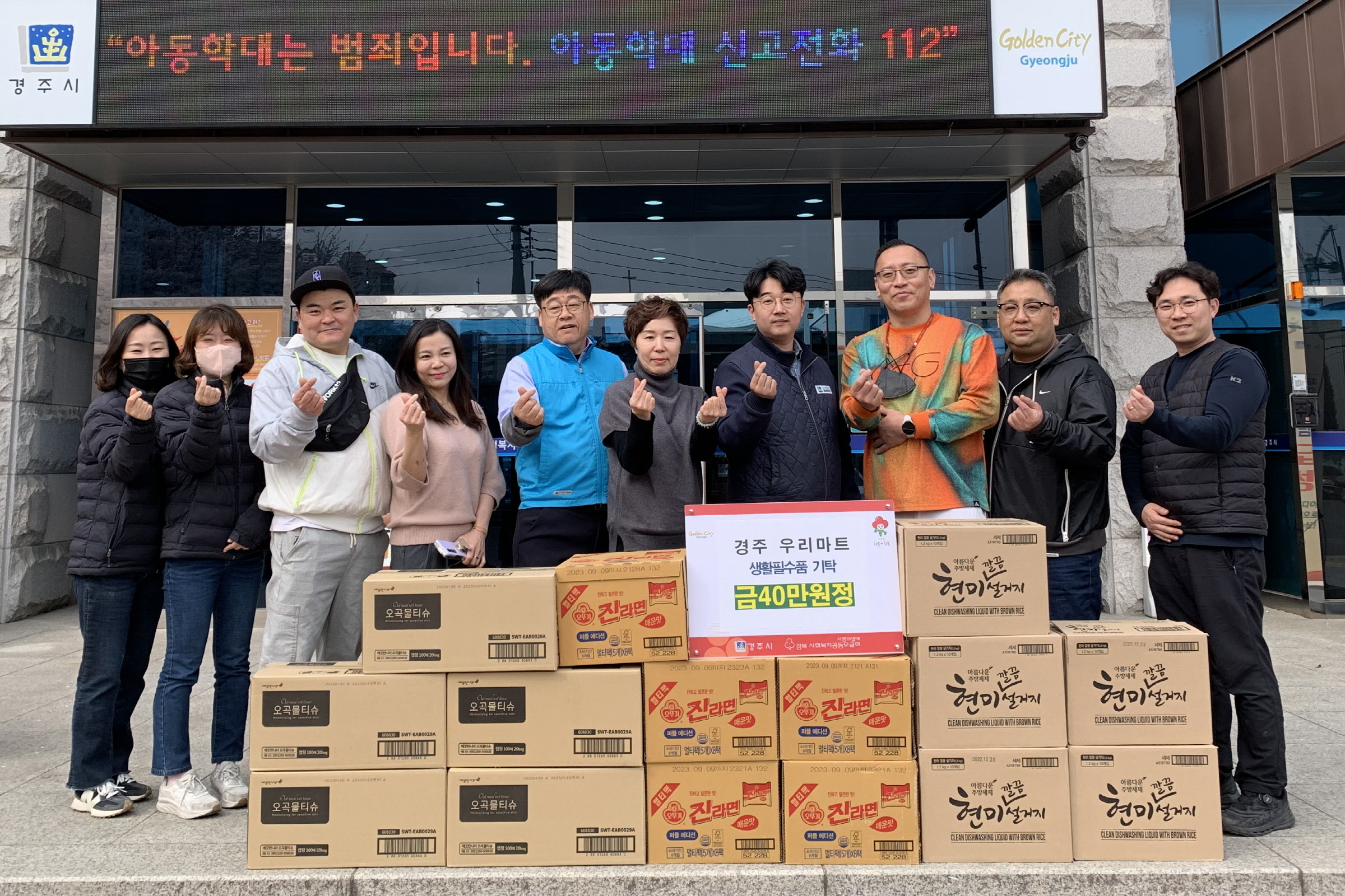 경주 우리마트 관계자는 “어렵고 힘든 시기에 소외된 이웃들을 위해 쉽게 기부할 수 있다는 정보를 준 김은정 ‘식모회’ 회장에게 감사하며 기부된 물품들이 꼭 필요한 이웃들에게 전해졌으면 좋겠고 추운 겨울이 가고 따뜻한 봄이 다시 오듯 우리 이웃들에게도 포근한 봄이 왔으면 한다”고 전했다.