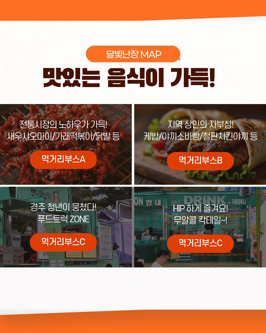 먹거리부스A(봉황대, 명승주차장) : 전통시장의 노하우를 담은 야시장!
