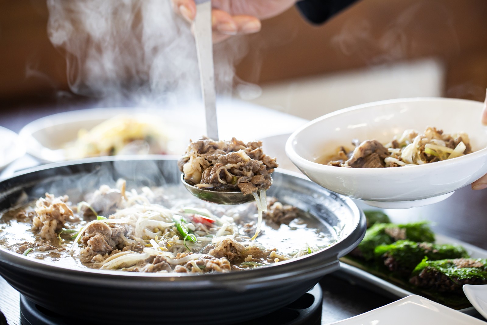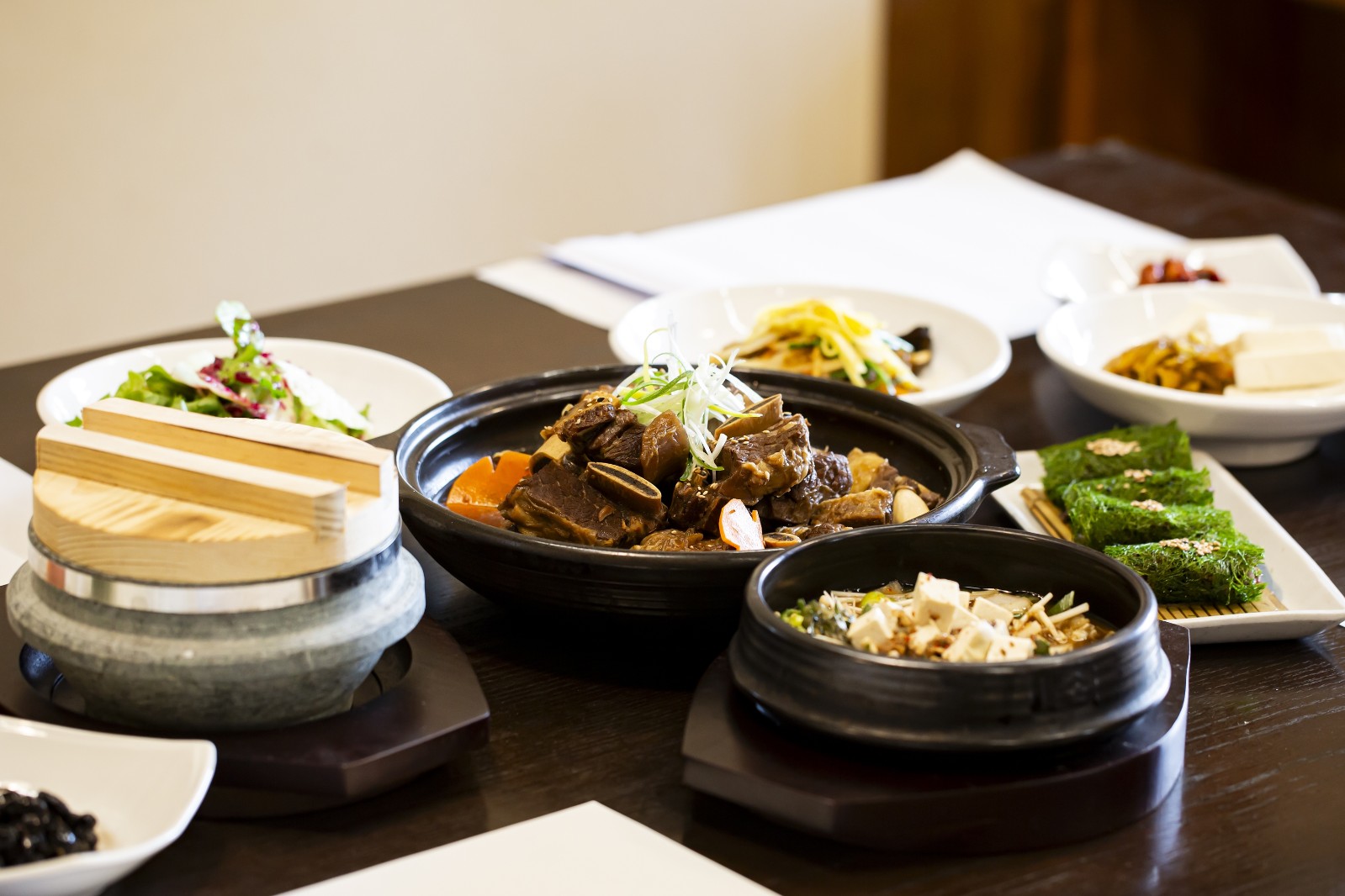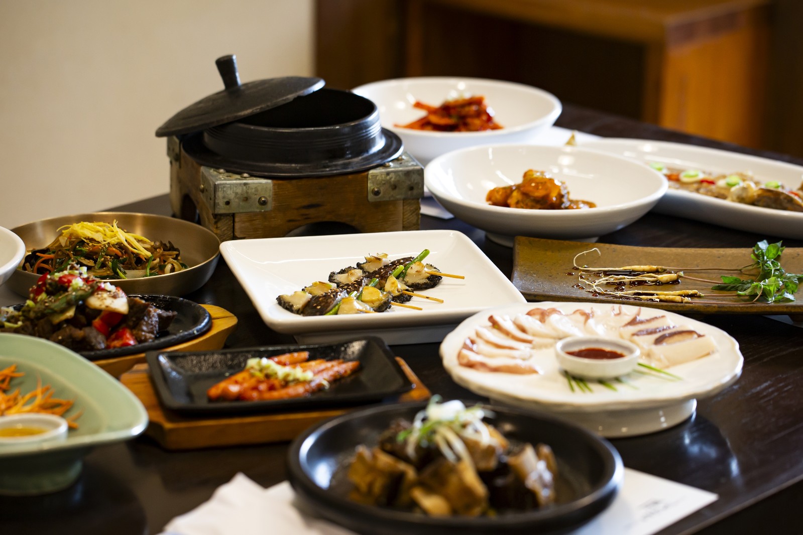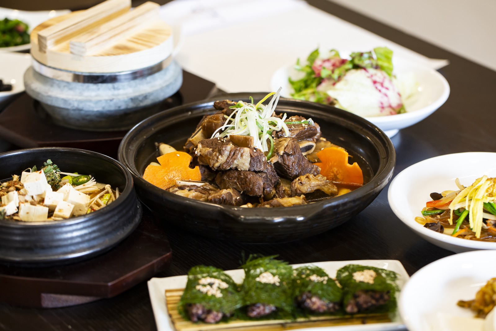 입맛 돋우는 전채요리를 시작으로 활어회, 갈비찜, 황태요리, 보리굴비 등의 굵직한 요리, 정갈한 밑반찬과 된장, 솥밥이 차례로 내어진다.