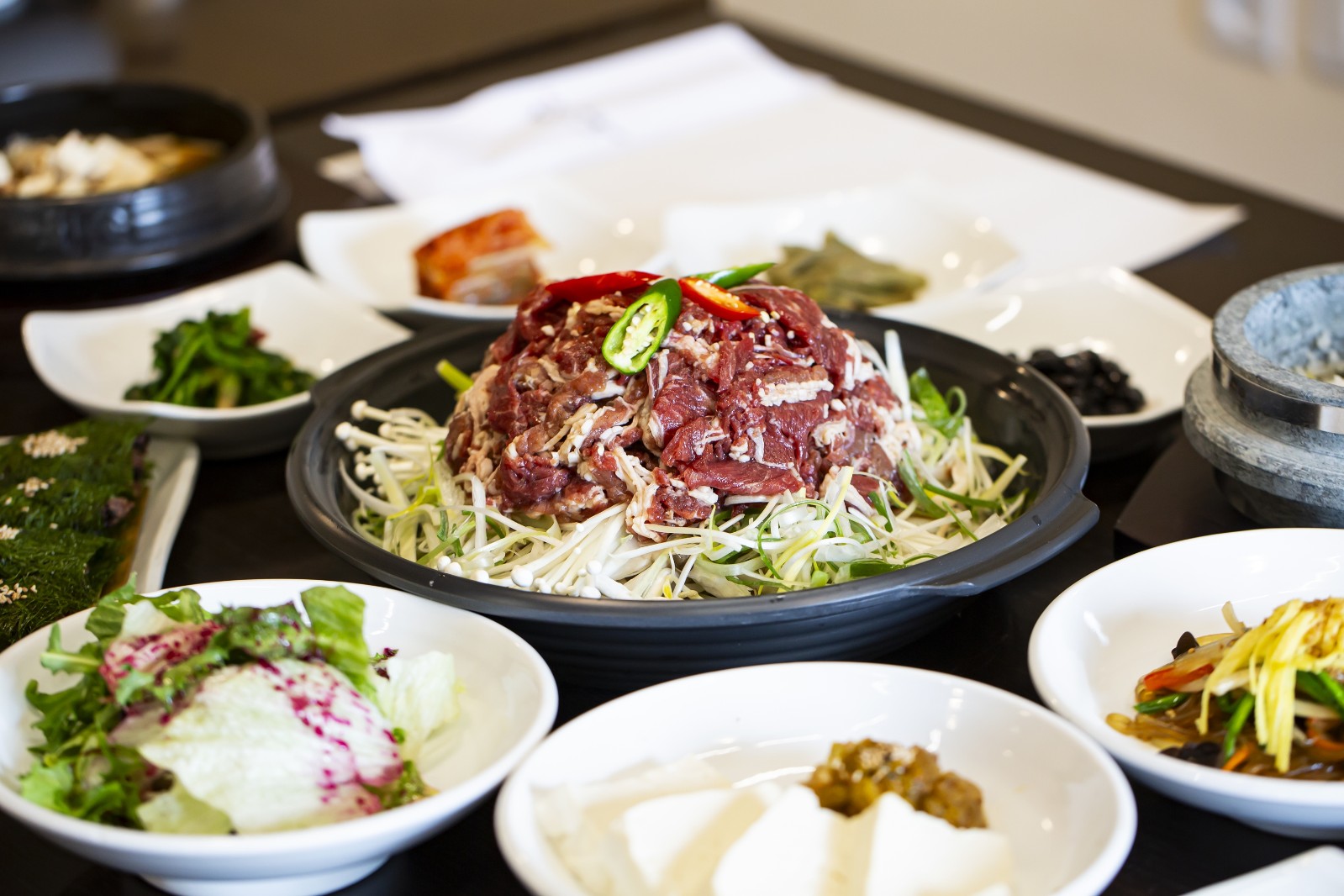 점심에는 가성비 좋은 특선 코스 요리가 준비되어 있다. 단품으로 갈비찜, 떡갈비 등도 만족스럽다.