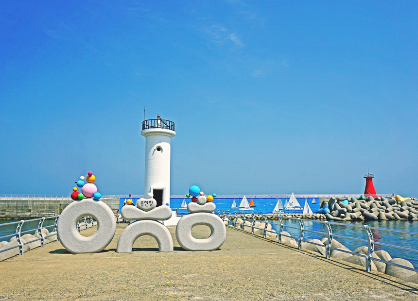 - 다양한 형태의 주상절리를 만날 수 있는 양남면 읍천리로 향한다. 작은 항구 읍천항은 ‘그림이 있는 어촌마을’로 꽤 유명세를 탔다. 지난 2010년부터 매년 인근의 월성 원자력 본부에서 벽화 공모전을 열면서 전국에서 벽화를 그리는 화가들이 모여들어 작품을 남겼다. 공모전은 몇 해 전 중단되었지만, 그림은 여전히 읍천항을 수놓고 있다. 시간의 때가 묻어 색 바랜 그림은 외려 빈티지한 매력을 보여 준다. 항구를 둘러싸고 옹기종기 모여 있는 가옥 사이사이를 누비며 숨은 그림 찾기를 하는 재미를 누릴 수 있는 곳이다. 벽화마을은 자연스럽게 읍천항 등대공원과 주상절리 파도소리길과 이어진다. 그림 감상하고 등대공원에서 잠시 휴식을 취한 뒤, 해안가 약 1.7km를 따라 늘어선 주상절리를 감상할 수 있는 파도소리길을 거닐어 보자. 더 없이 좋은 반나절 바다여행 코스가 된다. (※2021년 4월 25일 기준, 파도소리길 일부 구간 태풍 피해 복구공사 진행, 통행에 유의 바랍니다.)